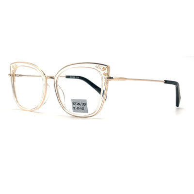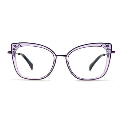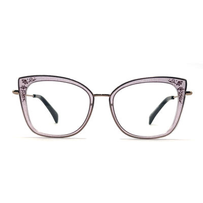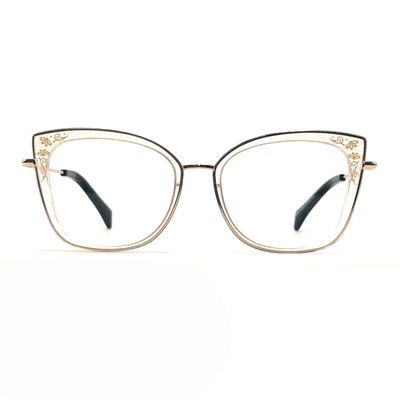 アセテート金属光学としても知られる 私たちのアセテート金属眼鏡は 金属フレームの耐久性と アセテート材料のスタイリッシュで軽量な性質を 組み合わせていますこのフレームは,機能とファッションのバランスを求める女性にとって完璧です.